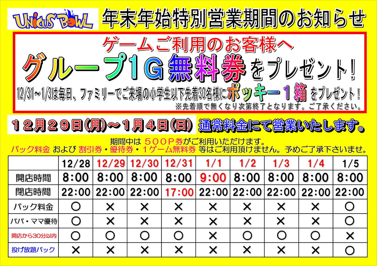 年末年始特別営業のお知らせ